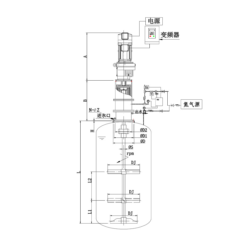 ● The size DJ data in the table is determined by Top based on the user's stirring purpose, stirring capacity, and physical properties parameters, and the actual situation shall prevail.